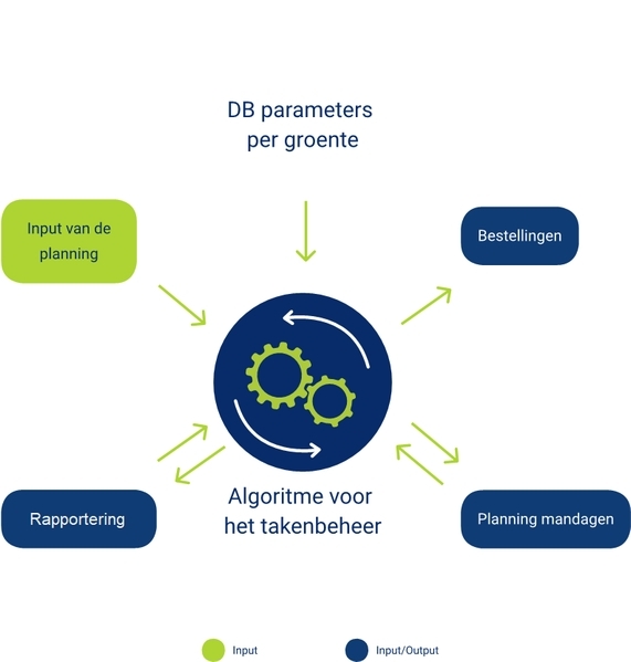 - Er wordt rekening gehouden met een veertigtal parameters die eigen zijn aan elke groente (bv. tussenruimte, nood aan organische en minerale stoffen, waterpeil, zonniveau, combinatieteelt, roof- en hulpdieren, enz.)